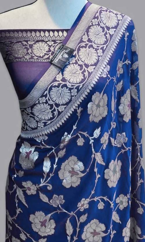 Woven Banarasi Georgette Saree (Blue)