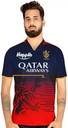 Men Printed, Typography V Neck Polyester Dark Blue, Red T-Shirt