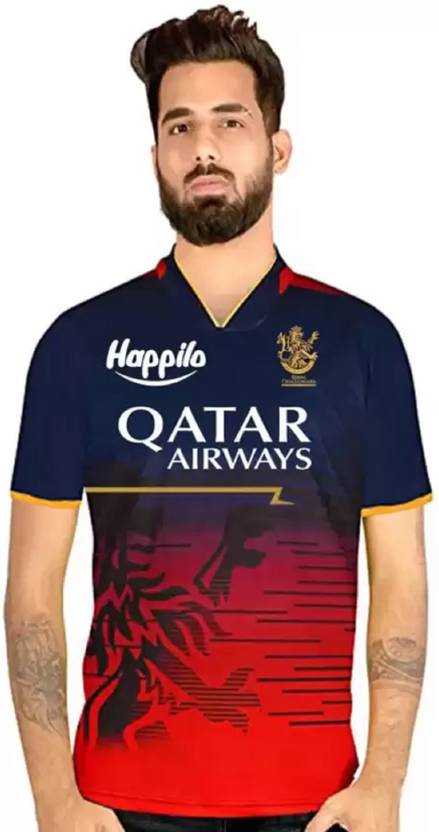 rjm Printed, Typography Men V Neck Dark Blue, Red T-Shirt