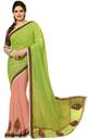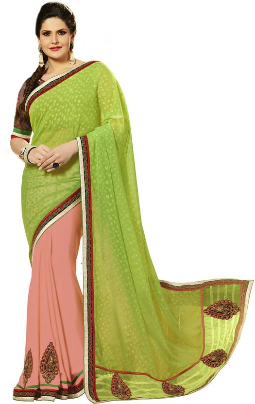 Self Design, Embroidered Bollywood Cotton Blend, Georgette Saree (Green, Beige)