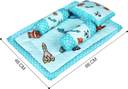 In this season we brings LOREM BB109 Blue Baby bed Is made of high-quality of Cotton. This baby bed Come's with 1 Rectangle Bed, 2 Rolling Pillows, 1 Rectangle Pillow with Space Theme. It's Size is 26 x 19 inch. It's Reversiable & You can Use it both of side. This baby bed is mainly use for new Born baby & Toddlers for 0-1 Year baby. This bed is widely used for gifting to new born babies.