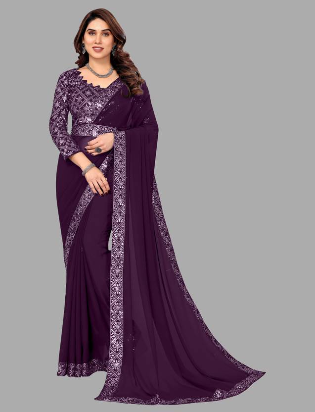 RJTAJ FAB Self Design, Solid/Plain Bollywood Georgette Saree (Purple)