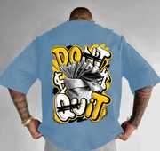 our exquisite loose-fitting blue T-shirt, a garment that transcends mere fashion to become a symbol of strength and perseverance. Elegantly emblazoned with the inspiring phrase "Don't Quit," this shirt is more than just a piece of clothing; it is a daily affirmation to push through life's obstacles with unwavering resolve. Crafted from the finest, breathable cotton, it envelops you in unparalleled comfort, making it the perfect companion for both your most challenging days and your moments of relaxation. The rich azure hue not only exudes a sense of calm and confidence but also complements a myriad of styles, ensuring that it seamlessly integrates into any wardrobe. Whether you're dressing for a casual outing with friends or gearing up for an invigorating workout session, this T-shirt stands ready to support you in every endeavor.The design of this T-shirt is a masterful fusion of simplicity and motivation, featuring bold, striking typography that commands attention while maintaining an air of understated elegance. The loose fit drapes effortlessly over the body, allowing for unrestricted movement and a relaxed silhouette that flatters all body types. This versatility makes it ideal for layering under a jacket or wearing solo as a statement piece. For those who appreciate a lifestyle that values both style and substance, this T-shirt embodies the perfect balance, encouraging you to embrace comfort without sacrificing your personal aesthetic. It serves as a reminder that fashion can be both functional and inspirational, making it a must-have addition to your collection.The versatility of this blue T-shirt allows you to pair it effortlessly with tailored joggers for a chic athleisure vibe or with your favorite denim for a laid-back weekend ensemble. Whether you're hitting the gym, running errands, or simply enjoying a leisurely day at home, this T-shirt serves as a canvas for your personal mantra, encouraging you to embrace every moment with tenacity and grace. Make a bold statement and let your attire reflect your unwavering spirit. With this T-shirt, you are not just wearing a piece of clothing; you are showcasing a mindset that champions resilience and determination, inspiring others to do the same.