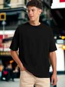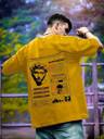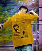 This The man wearing this yellow t-shirt with a newspaper on it exudes a cool and trendy vibe. The oversized fit of the t-shirt provides a relaxed and comfortable feel, allowing you to move freely throughout the day. Whether you're heading out for a casual day with friends or running errands around town, this t-shirt is a versatile choice that can be dressed up or down depending on the occasion.oversize backprint t-shirt is the perfect addition to your casual wardrobe. Made from soft and comfortable fabric, it features a vibrant yellow color that will surely make you stand out from the crowd. The t-shirt is designed with a unique twist - a newspaper print on the back. This eye-catching design adds a touch of creativity and personality to your outfit, making it a great conversation starter.