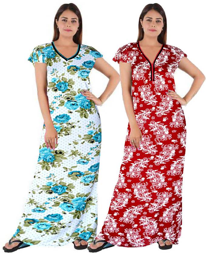 RK Creation Pack of 2 Women Nighty (Green, Maroon)