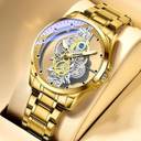 Gold Tones, Gold metal strap, Metal Strap, Skeleton Dial, Premium, Water resistant