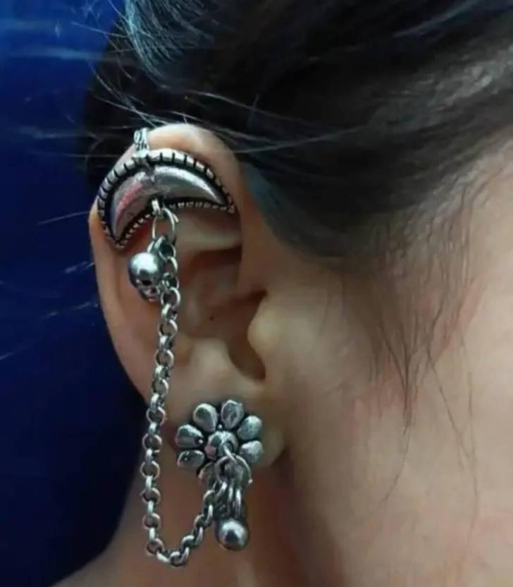 These are the most prevalent "Chand earrings." They feature a distinct crescent moon shape. The design can be simple, a plain metallic crescent, or highly elaborate. Elaborate designs often incorporate intricate filigree work, kundan (gemstone setting), meenakari (enameling), pearls, beads, or other embellishments hanging from the crescent.