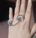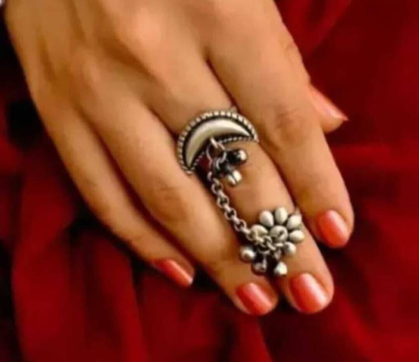 A signet-style ring with a crescent moon engraved or embossed on its face. An elaborate, decorative crescent that forms the centerpiece of the ring.