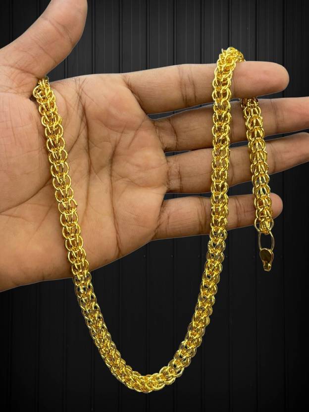 Crafted with premium gold plating, this gold chain for men includes strong joints and secure hooks, making it both durable and comfortable to wear. Its elegant shine and lightweight feel make it an ideal choice for those looking for a golden chain for men heavy in style but light in weight. Add this heavy chain for men to your wardrobe and elevate your overall look effortlessly.