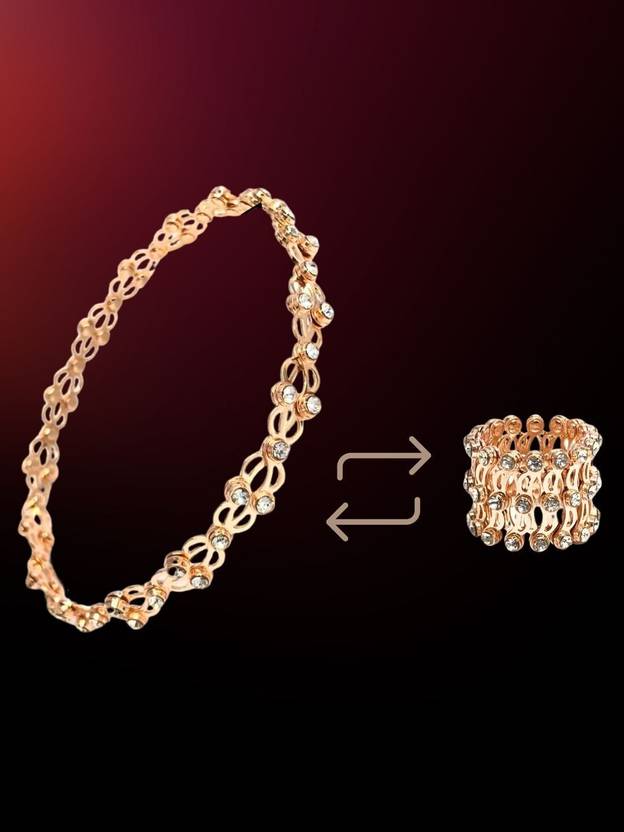 The Gold bracelet for women is a symbol of timeless elegance and luxury. The rich gold finish enhances the brilliance of the cubic zirconia stones, making it a statement piece for those who love bold, classic jewelry. Whether worn as a bracelet or a ring, this design exudes confidence and sophistication.