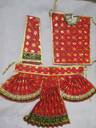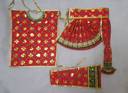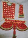High Qualty Hanuman dress SpeciallyDesignfor IndianDeity Gods This Beautiful HandmadeHanuman Dress poshak is available in Differeant attractiv colors.It is easyto wear and easy to Dryclean. It is made With high quality Silk cloth with Gota as a border and lace around