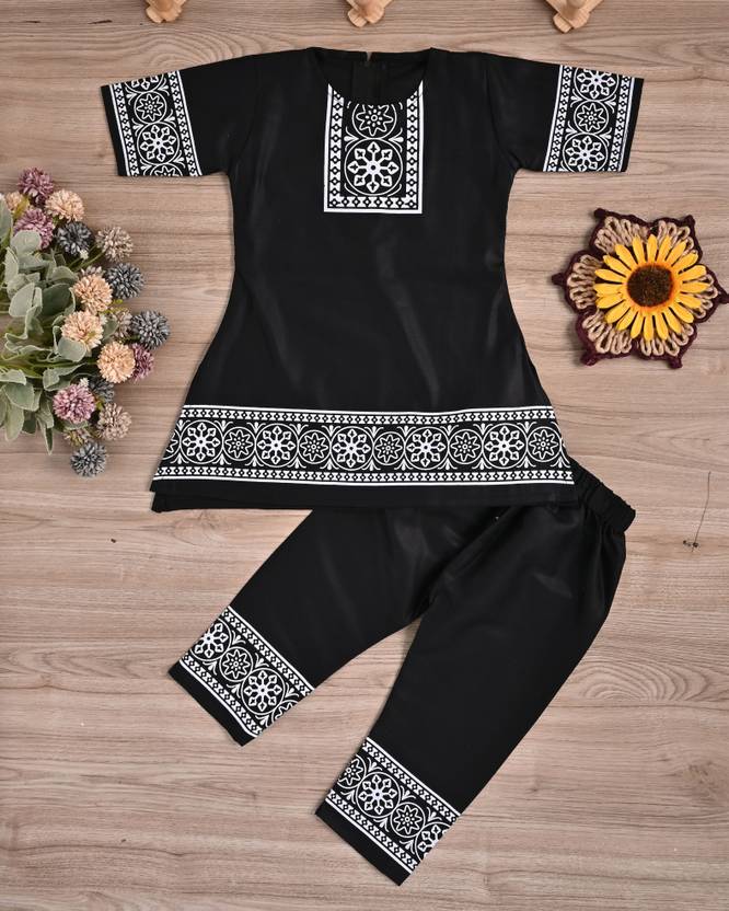 Rkdress Girls Casual Kurta and Pyjama Set (Black Pack of 1)