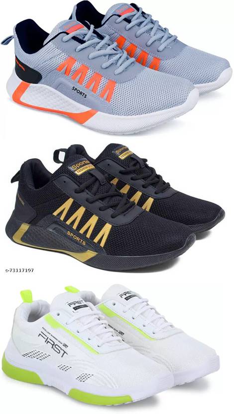 Pennon Sport Shoe LaceUp Lightweight Multicolour Running Shoes For Men Pack Of 3