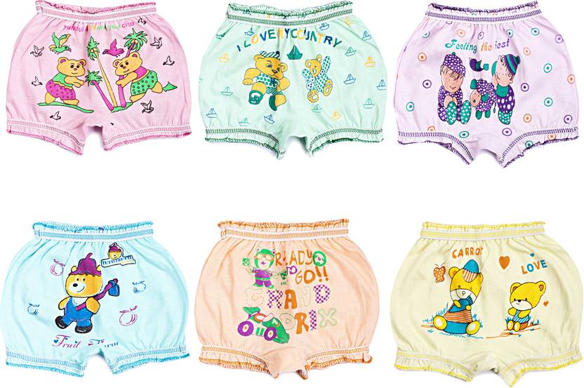 RKS Multicolored Unisex Kids Cotton Bloomers | Inner Wear | Printed Baby Girls Short Pants | Baby Sleep Wear Infant & Kids Panty | Toddlers Cotton Panty - Pack of 6
