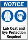 NOTICE Lab Coat and Eye Protective required Sign Board