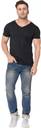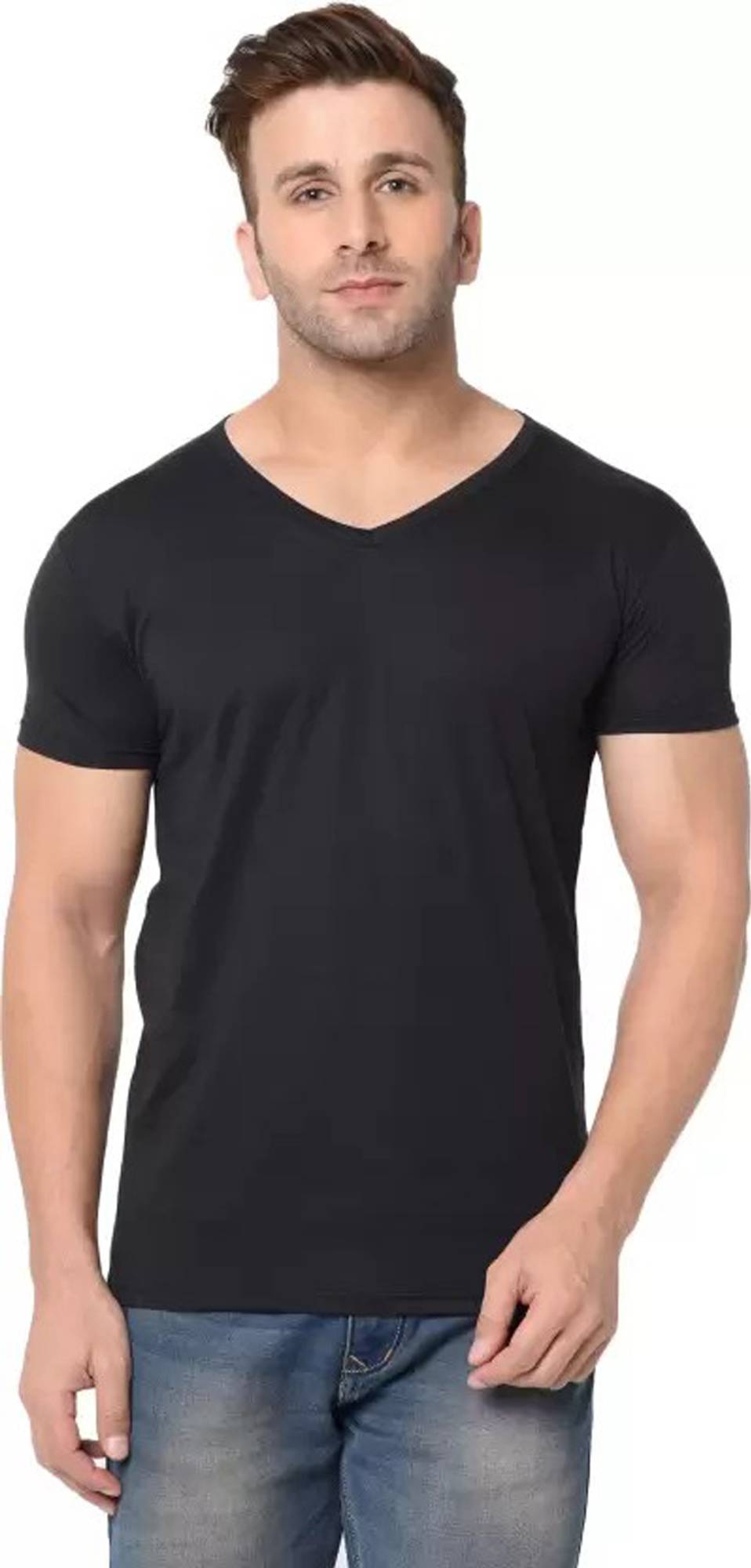 RLP Men Solid V Neck Polyester Black T-Shirt