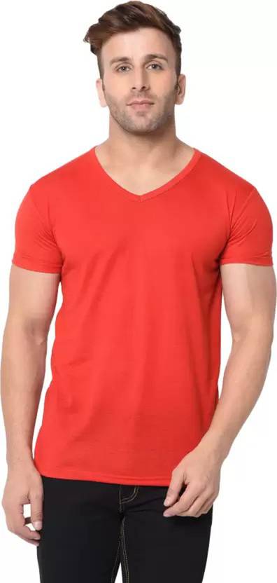 RLP Men Solid V Neck Polyester Red T-Shirt