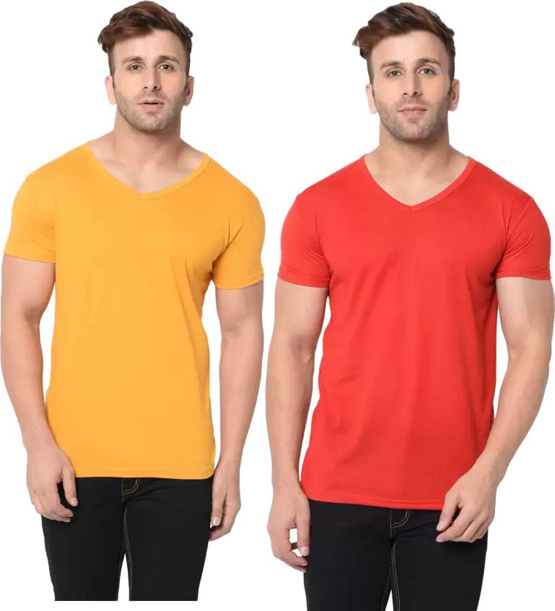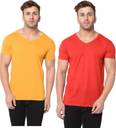 RLP Pack of 2 Men Solid V Neck Polyester Yellow, Red T-Shirt
