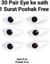 The pack of 30 artificial eyes for Laddu Gopal Ji, made from high-quality plastic, is designed to enhance the divine and realistic appearance of the deity's idol. This set comes with a complimentary Surat Poshak, adding extra value to your purchase. The artificial eyes are crafted to provide a lifelike look, bringing charm and spirituality to the Laddu Gopal Ji idol.Key