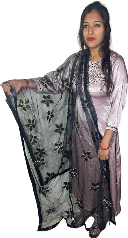 Net Embroidered Black Women Dupatta