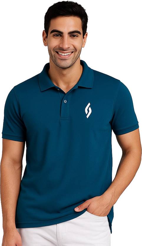 Men Solid Polo Neck Cotton Blend Blue T-Shirt