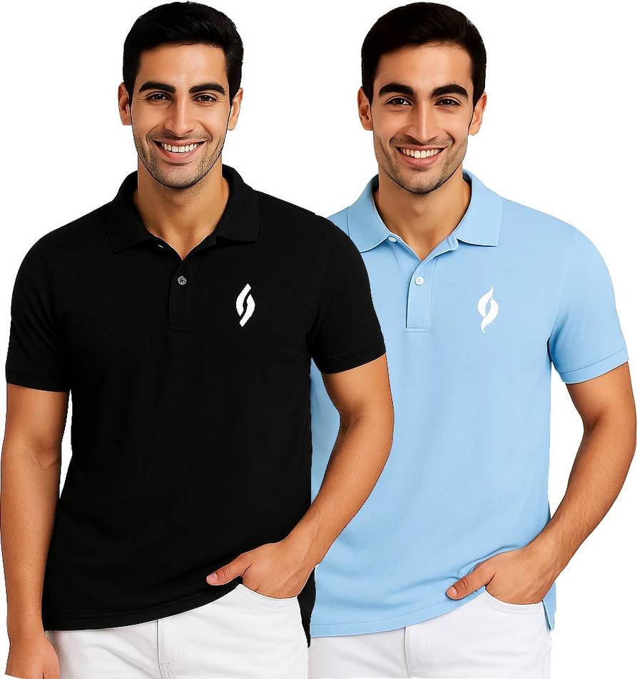 RMLKN Pack of 2 Men Solid Polo Neck Polycotton Multicolor T-Shirt
