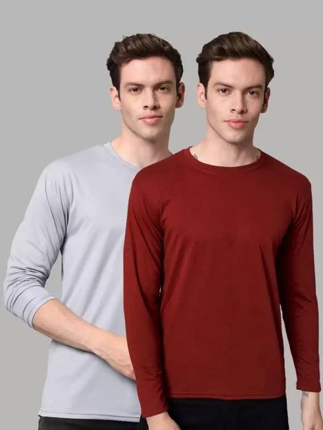 RMLKN Pack of 2 Men Solid Round Neck Polyester Multicolor T-Shirt