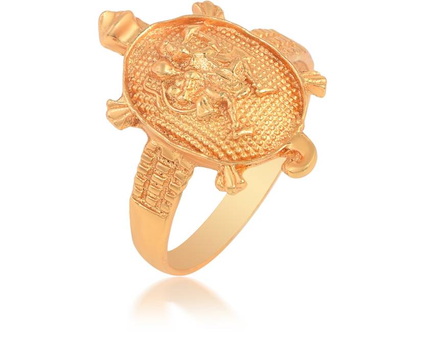 RN Gold Plated Brass, Tortoise with Flying Hanuman, Bajrang Bali, Balaji, Turtle Design, Free Size Finger Ring for Men and Women Brass Gold Plated Ring