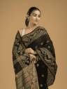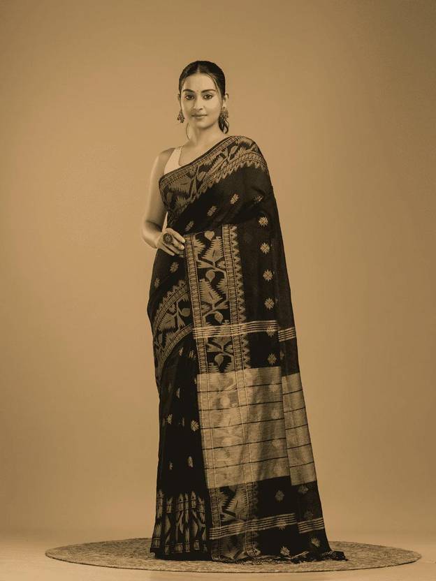 Self Design Jamdani Pure Cotton Saree (Black)