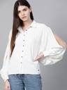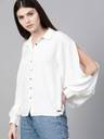 White solid woven shirt style top with gathered detail, has a shirt collar, long sleeves, and button closures. Keep warm and in style with this top from Roadster. This white piece is perfect for hanging out with friends when you put it with a fabulous dark denim jean and your favourite pair of shoes.