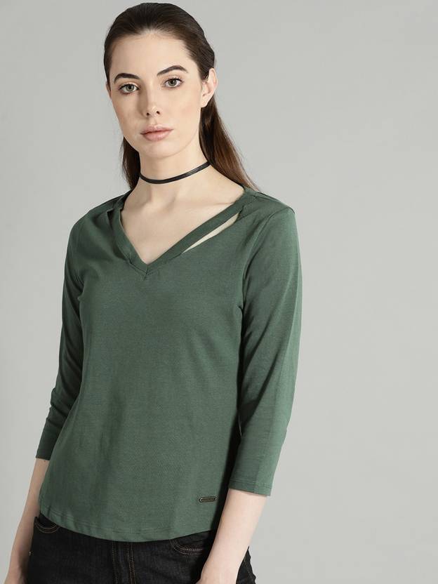 Roadster Casual Regular Sleeve Solid Women Green Top