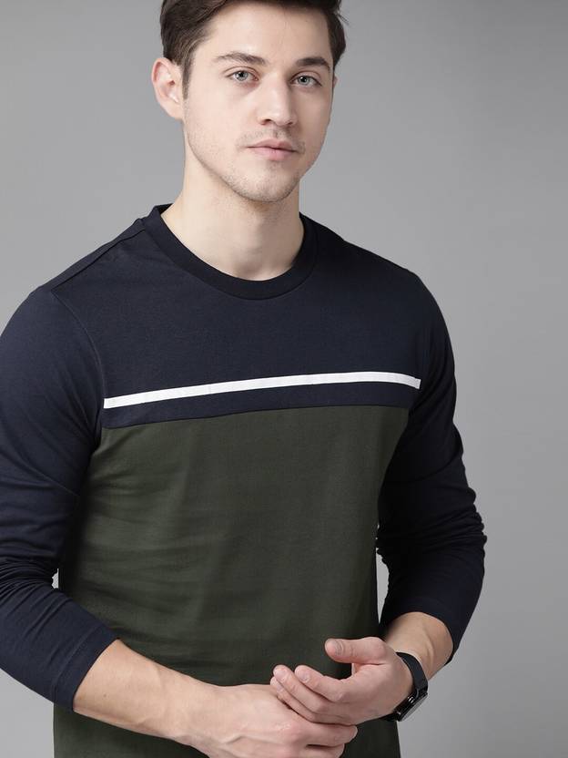Roadster Colorblock Men Round Neck Dark Green T-Shirt