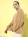 Roadster Embroidered High Neck Casual Women Brown Sweater