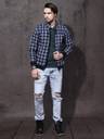 Blue checked tailored jacket, has a mandarin collar, 4 pockets, zip closure, long sleeves, straight hem, unlined lining. Make your wardrobe more trendy with this handsome blue jacket. This jacket from Roadster can be worn with distressed denims and a modern tee for a laid-back brunch outfit.