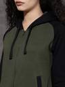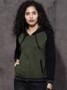 Olive Green solid sweatshirt, has a hood, 2 pockets, long sleeves, zip closure, straight hem. Cozy up in a sweatshirt from Roadster this season. When youre going for a stroll around the park, style this olive piece with a comfy tee, distressed denims, and sneakers.