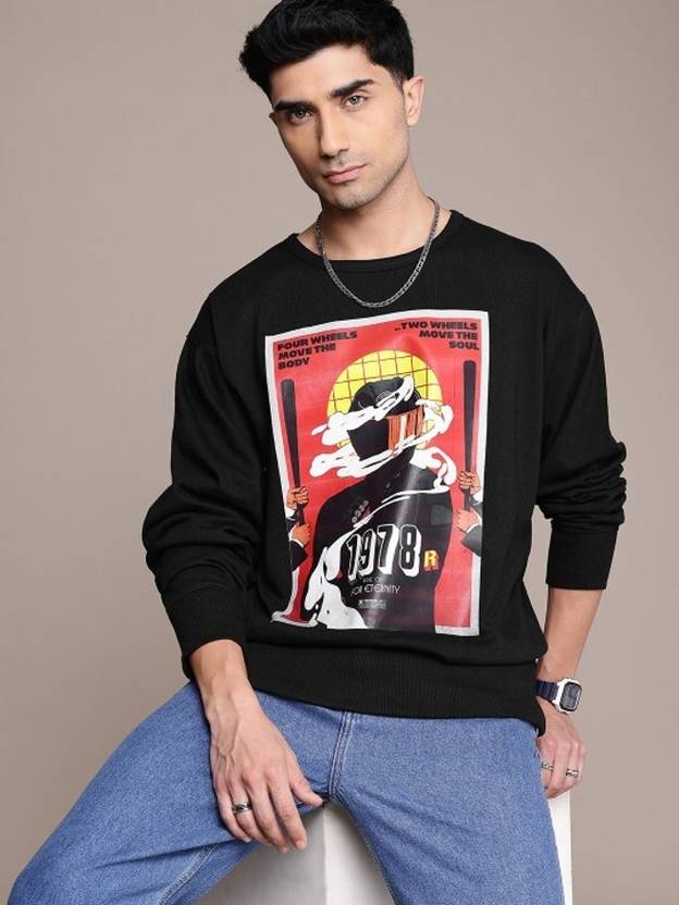 Roadster Men Printed Relaxed Fit Sweatshirt, round neck, long sleeves, closure, ribbed hem