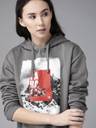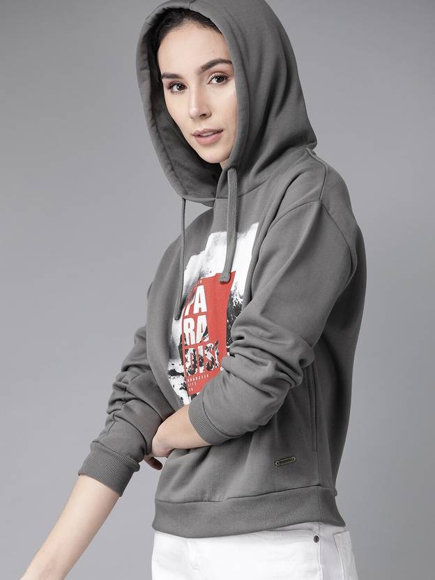 Grey, white and red printed sweatshirt, has a hood, two pockets, long sleeves, straight hemHEIQ VIROBLOCK - AntiviralThis HEIQ Viroblock technology treated (Product category) helps to reduce the risk of viral and bacterial persistence on contacted surfaces and objects thereby lowering the potential of transmission. This antiviral finish effectiveness has been tested as active against most of the viruses on the fabric surface up to 99.9%. All mandatory precautions need to be taken as suggested by ICMR to ensure prevention from viral infections.. Youre on your way to a warmer winter with this cuddly Roadster sweatshirt. This grey piece can be teamed with a casual T-shirt and a pair of slim jeans when youre going to a low-key dinner with your friends.