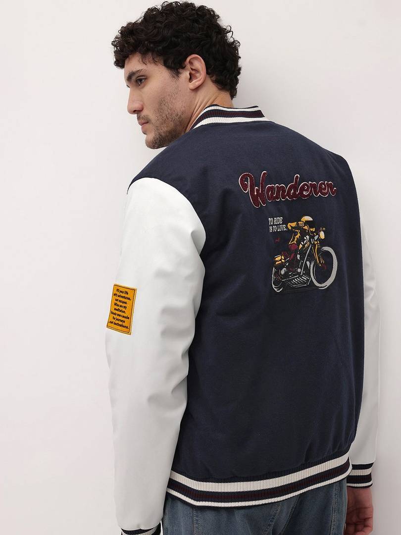 Men Self Design Varsity Jacket