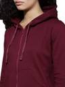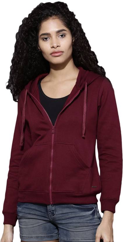 Maroon solid sweatshirt, has a hood, 2 pockets, long sleeves, zip closure, straight hem. Warm up in this high-quality Roadster sweatshirt this season. When you're having a movie night with your friends, wear this maroon piece with dark denims and a basic T-shirt.