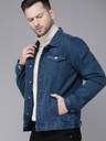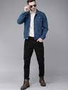 Elevate your overall style with this fashionable blue solid denim jacket from Roadster. It features a spread collar, button closure, and long sleeves. Designed with four pockets for utility and a straight hem for a clean look, this unlined jacket is perfect for a casual day out. Pair it with trousers and loafers for a sharp, town-ready ensemble.