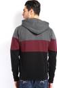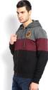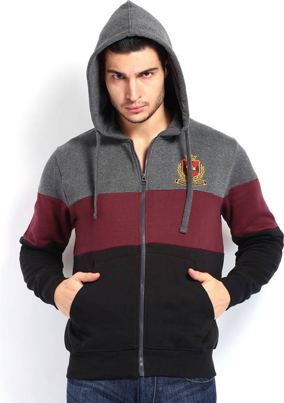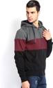 Grey, dark pink and black knitted panelled sweatshirt, has a hood with drawstring fastening, a full zip closure on the front, long sleeves with ribbed hems, embroidered brand applique on the left side of the chest, a scoop pocket on either side of the front waist, a ribbed hemline, has a fleece lining. This sweatshirt from Roadster will inject contemporary cool into your weekend ensemble. Best styled with slim fit jeans or cargo shorts, a trendy pair of shades and canvas shoes for a fun lunch with your buddies.