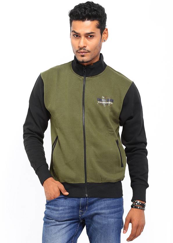 Olive green and black knitted sweatshirt, has a mock collar, full zip placket on the front, long sleeves with ribbed cuffs, brand print on the left side of the chest, an insert pocket on either side of the front waist, ribbed hemlineCut from a smooth fabric, this sweatshirt from Roadster combines a relaxed feeling with an energetic sense of style that's easy and trendy. Team it with your favourite pair of jeans and sneakers for a casual winter ensemble. You are unique and wouldn't like it if the creator made too many people ditto. Similarly, this product is unique, handmade and crafted with love. There are no two products we make, which will ever be ditto. To maintain a high degree of authenticity, we advise our patrons to wash our products separately and expect some fading, colour bleeding, wear and tear. The article ages uniquely as you treat it, acquiring your personalised feel. Go on, enjoy this specially created product to the hilt. Have fun.