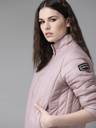 Lavender solid padded jacket, has a stand collar, zip closure, long sleeves, two pockets, polyester lining. This piece by Roadster is a piece that gives both style and comfort for the chilly season. Layer it on top of a turtle neck sweater for maximum warmth.