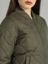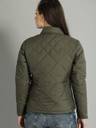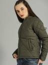 Layer on a chic olive green jacket from Roadster. Stay warm while heading out to the city with friends this weekend in this piece.Olive green solid quilted jacket, has a stand collar, two pockets, zip closure, long sleeves, straight hem, polyester lining