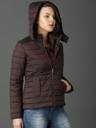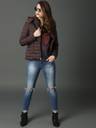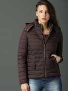 Burgundy solid padded jacket, has a hooded, three pockets, zip closure, long sleeves, straight hem, polyester lining. Layer on a chic burgundy jacket from Roadter. This piece can be matched with dark wash jeans and a cute tee when youre going to dinner with your family.