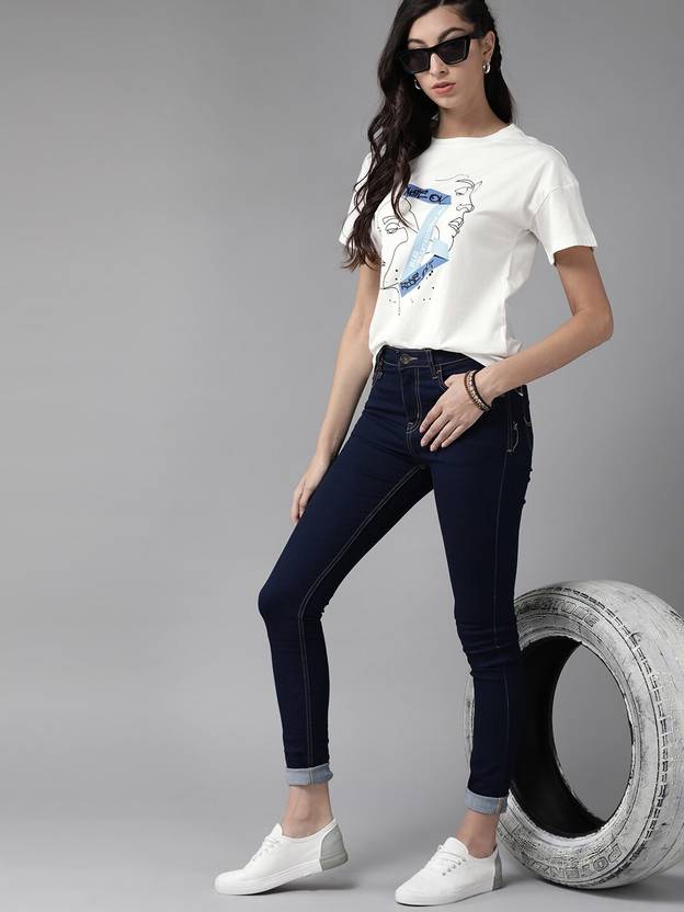 Roadster Graphic Print Women Round Neck White T-Shirt