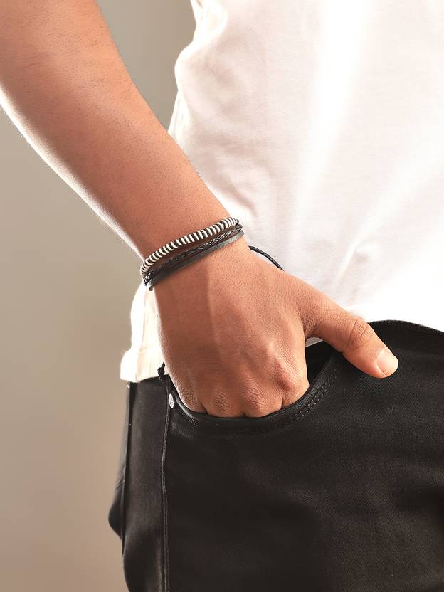 Men Black & Brown Leather Handcrafted Multistrand Bracelet
