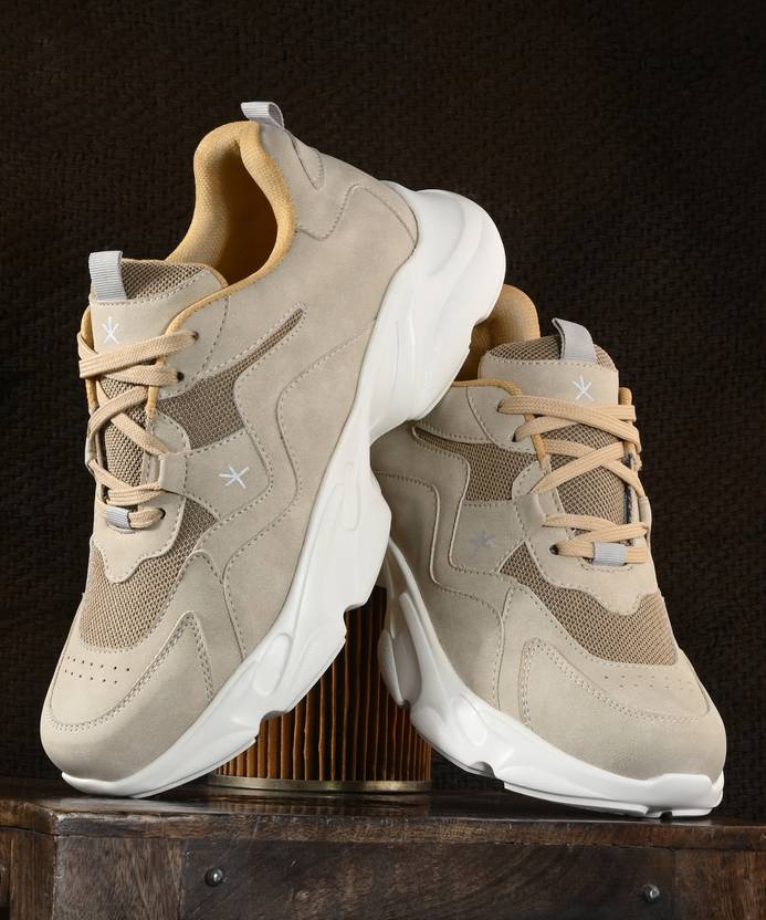 Roadster Men Beige Faux Leather Casual Shoes Lace Up Sneakers