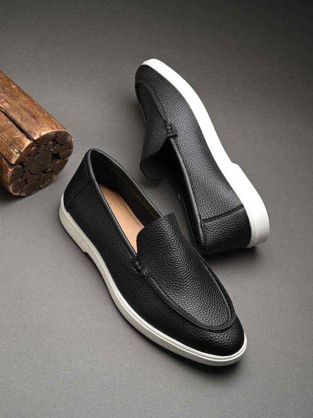 Roadster Men Black Faux Leather Casual Slip On Loafers
