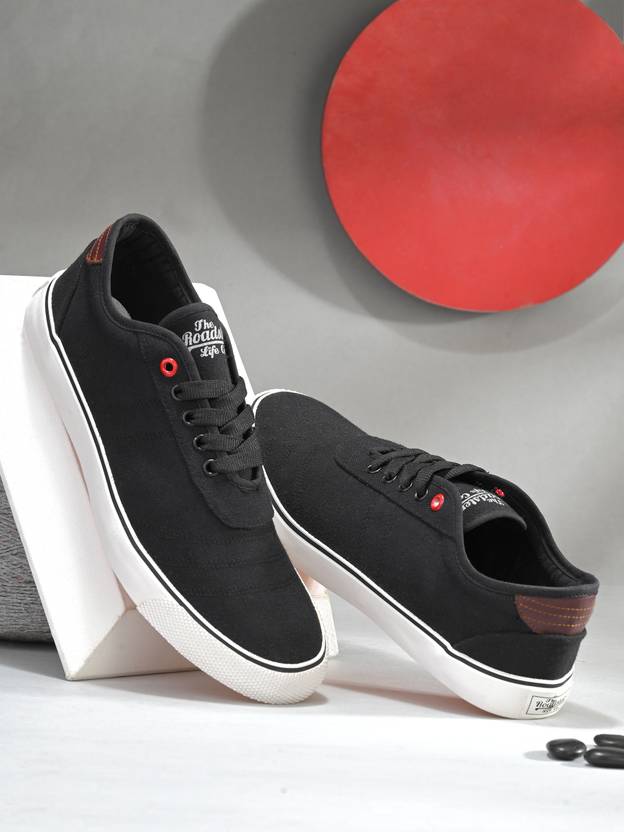 Men Black Solid Lightweight Canvas Comfortable Black Sneakers Shoes